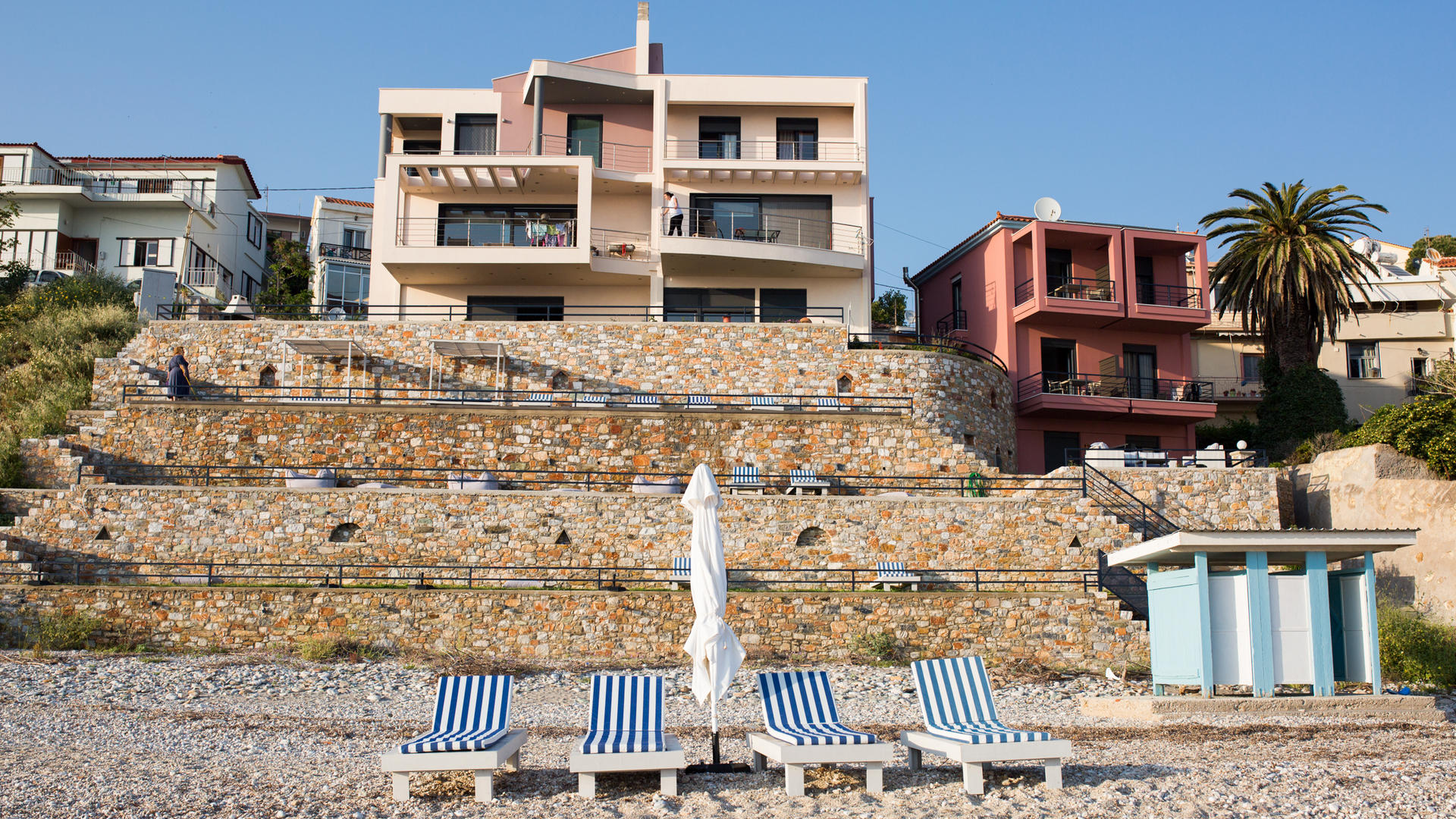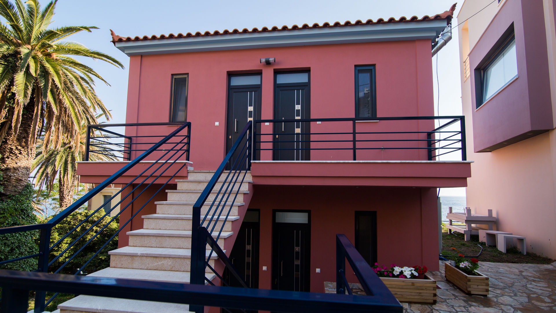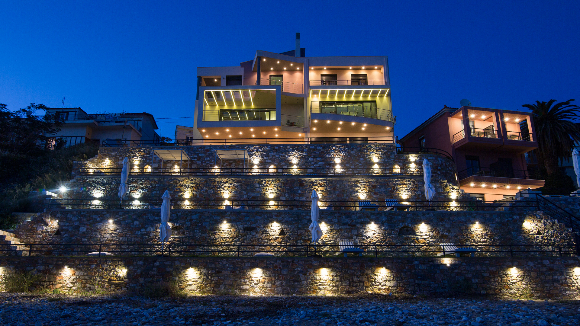 Εκεί που συναντώνται το αλάτι της θάλασσας του Αιγαίου, η αρχιτεκτονική του περασμένου αιώνα σε περίτεχνα αρχοντικά, η τέχνη των τελευταίων καραβομαραγκών που τα σκαριά τους διέσχιζαν τη Μεσόγειο για να φέρουν πραμάτειες, λάδια, σαπούνια και μυστικές συνταγές και μυρουδιές του ούζου, εκεί, επάνω στα βότσαλα της παραλίας Κόκκινα Μάρμαρα, ή αλλιώς Πλακάκια στο Πλωμάρι τη πατρίδα του ούζου, του γλεντιού, της ναυτοσύνης και της ελιάς, στη νότια Λέσβο, χτίστηκαν τα δωμάτια της οικογένειας του Μανώλη Αρμενάκα και της Μαρίας Γάζηλα για να δώσουν τη δυνατότητα σε Έλληνες και μη επισκέπτες, να ξεκουραστούν και να βυθιστούν στις ανέσεις ενός σύγχρονου καταλύματος πάνω στη θάλασσα, να νιώσουν στο κορμί τους το αλάτι, κάνοντας είκοσι βήματα από το δωμάτιο τους, στη ψυχή τους γαλήνη και ευφορία και να απολαύσουν μαγευτικά ηλιοβασιλέματα και απίθανες βόλτες στο Πλωμάρι, ανακαλύπτοντας τις όχθες του ποταμού Σεδούντα με τα παλιά αρχοντικά, τα παλιά εργοστάσια λαδιού και σαπουνιού, τα καρνάγια, τα πλακόστρωτα, το υδραγωγείο, το μουσείο σαπουνιού, τα μουσεία ούζου, τα δρομάκια και τα σκαλιά μέχρι το Προφήτη Ηλία ψηλά στο λόφο και μετά να γίνουν όλοι μαζί, επισκέπτες και ντόπιοι, με τη βοήθεια ενός ποτηριού ντόπιου ούζου, μια μεγάλη παρέα στο Πλάτανο, στο Πλατανέλι, στο λιμάνι, στο Αμουδέλι, στη Μελίντα.